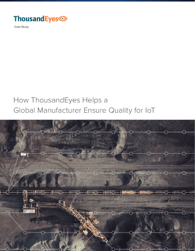 The leadership team decided extra visibility was needed, which was when they engaged ThousandEyes. The manufacturer’s network team deployed ThousandEyes to prepare for remote equipment deployments and ensure high quality networking across multiple networks including the Internet.