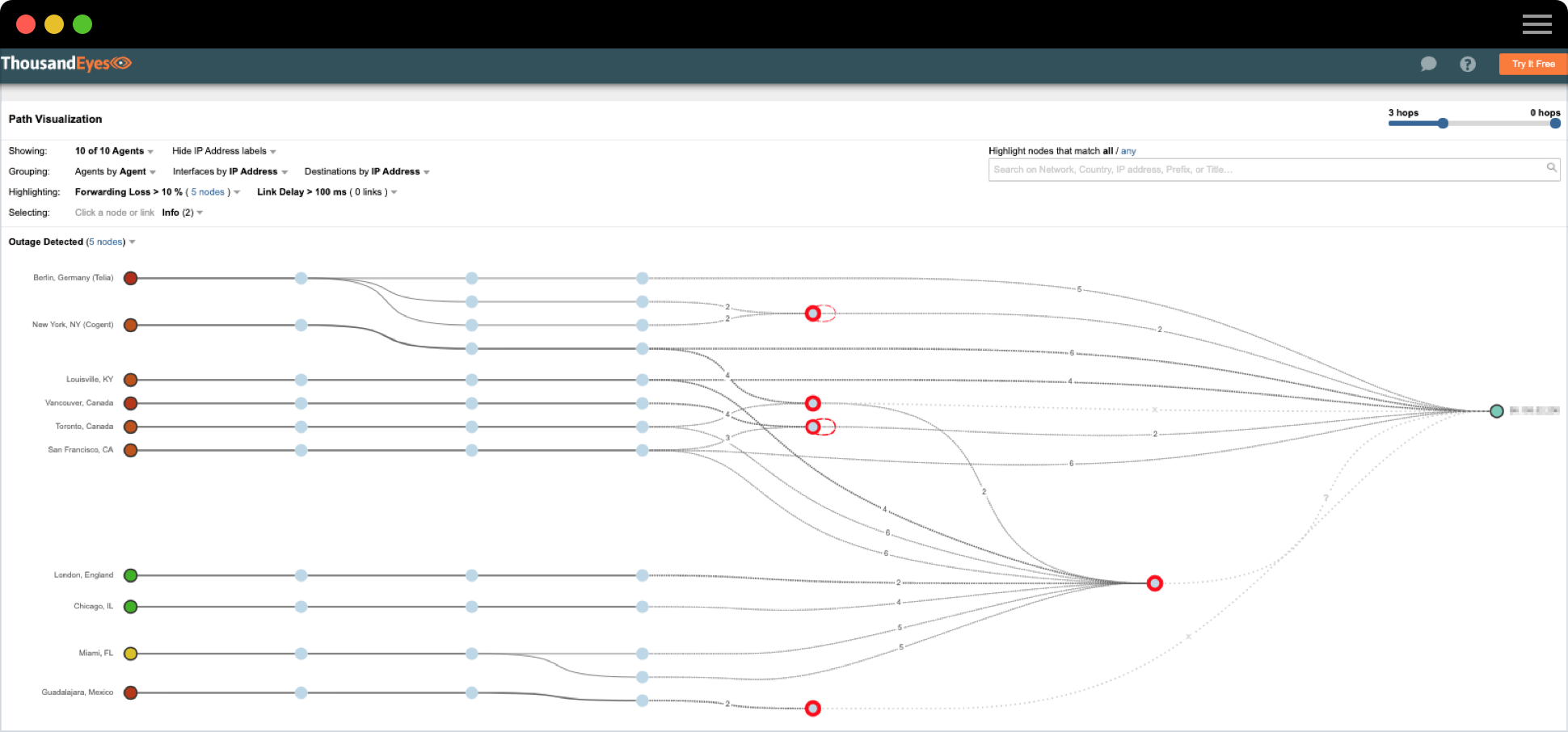 Figure 1: Path visualization from ThousandEyes provides valuable insight into connectivity issues and network outages.