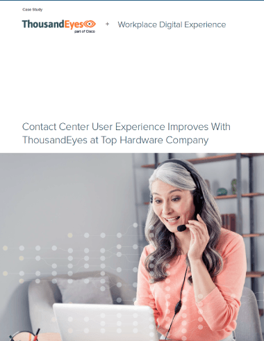 An employee's experience directly impacts the customer experience by influencing how well they do their jobs. And overall digital experience is crucial to delivering a successful contact center interaction with a customer. The hardware company knew that anything short could trigger a repeat call and prolong the issue. The company chose ThousandEyes to help its IT team ensure apps and networks could meet expectations for call quality, powering agent productivity and overall customer satisfaction.
