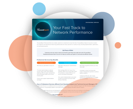 ThousandEyes' Professional Services team provides expert networking assistance for implementation, training, and specialized projects.