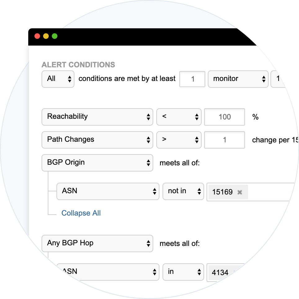 ThousandEyes provides instant visibility across the Internet and into the cloud, allowing IT to understand every dependency that impacts app experience—from the SaaS provider’s infrastructure to external dependencies, such as DNS, BGP, CDNs, and more.