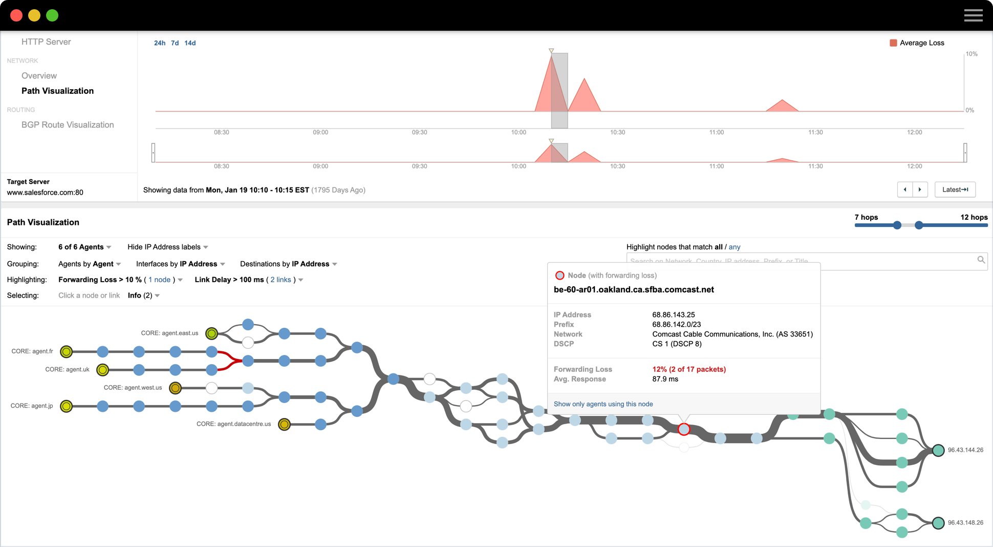 - BGP and network path visualizations empower IT to understand how traffic is being routed between users, sites, and key business applications