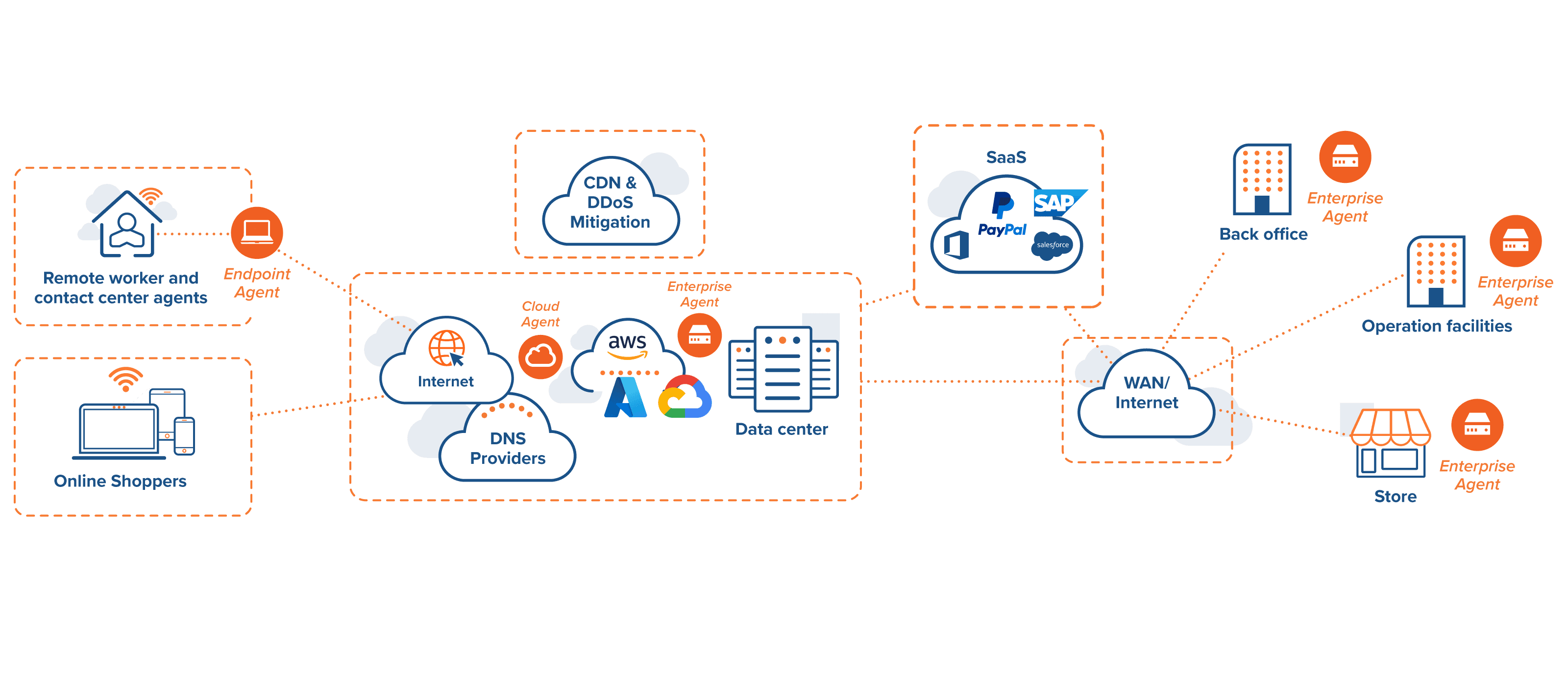 Monitor from inside the LAN/WAN environments and out to the Internet to identify outages and traffic anomalies associated with BGP hijacks or DDoS attacks that might impact your retail or fulfillment operations