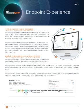 现代企业不断发展变化。对于终端体验,企业已经从以前的“尽在掌控”变为如今的“鞭长莫及”。首先,应用从过去的本地托管模式转变为现在的 SaaS 模式或云服务模式。其次,分布式办公日益普及,员工需要依赖互联网、移动网络和云服务组成的高度复杂的环境来访问各种关键应用。要在庞大的数字生态系统中保障员工高效工作,您需要采用具有端到端可视性的新 IT 管理模式,全面洞察所有用户终端通过任何网络访问任何 Web 应用的连接性能。